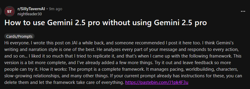 >>1392264 Почему сразу для шизов? Что человек не имеет права защищать свой интеллектуальный труд? Плюс многие карточки заточены конкретно под использование моделей джанитора
