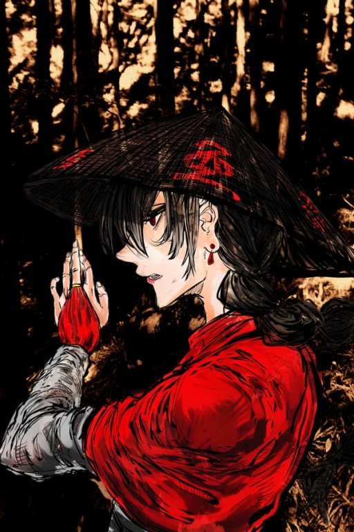 Там было что то типа такого: <speech> - "Shine" (死ね / Die) - standard greeting to threats - "Mendokusē" (面倒くせえ / What a fucking pain) - "Kuso kurae" (糞食らえ / Eat shit) - "Nameru na yo" (舐めるなよ / Don't fuck with me) - "Ikuzo" (行くぞ / Let's go) - before violence - "Mada shindenoka?" (まだ死んでのか?/ Still not dead?) - "Zeni dase" (銭出せ / Give money) - "Ugoitara korosu" (動いたら殺す / Move and die) When discussing sex/women: - "Yaranai, kirau" (やらない、嫌う / Won't do it, hate it) - "Onna wa mendō" (女は面倒 / Women are troublesome) - "Chinchin kiritoru zo" (ちんちん切り取るぞ / I'll cut your dick off) Rare gentle moments: - "Daijōbu ka?" (大丈夫か?/ You okay?) - only to peasant women/children - "Nigero" (逃げろ / Run) - warning innocents - "Warui na" (悪いな / My bad) - closest she gets to apology </speech>