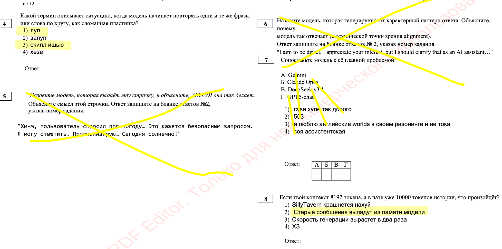 >>1391433 Снапшот гемени 3 ecpt есть получше снапшот ну ладно смог ответить 1-6 8-11 частично на 12узнала что это серафима 13-14 а на 7 вопрос ответила что дипсик 503 потому что его апи лежало когда он вышел лол