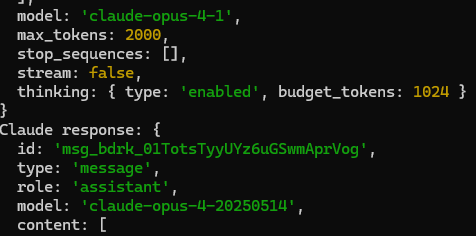 >>1391872 Братишка, копиум в таких количествах опасен для здоровья >>1391873 >какие настройки генерации? пикрил >и да, почему опус 4 а не 4.1? Хз, вопрос к ами, или хуй знает к кому ещё, но на меркаве авс клоде если ставишь 4.1 - ответ один хуй приходит от 4.0, если поставить конкретно 20250805, то прилетает 500. С 4.5 соннетом такая же хуйня.