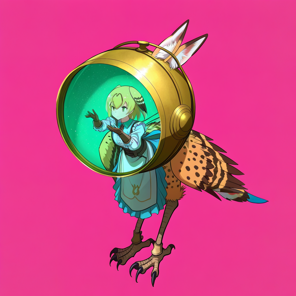 Уф, как же я заебался пытаться поставить в другую позу гарпию в специфичных панталонах. Во-первых, все облачные нейронки нахуй посылают при попытке перегенерировать персонажа, в чьём концепте нет обычных рук. Максимум, что я смог выжать - поменять стиль на более устраивающий меня. Во-вторых, приходится использовать zero-LoRA приём с догенерацией другой версии персонажа через инпэйнт на люстре, а она на фоне облака тупая как пробка.