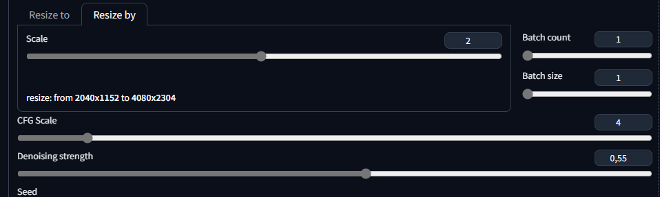 Все настройки и промпт точно такие же как и при генерации лоурез картинки. Ну разве что для лоурез генерации я использовал ControlNet Depth, а для апскейла - нет.
