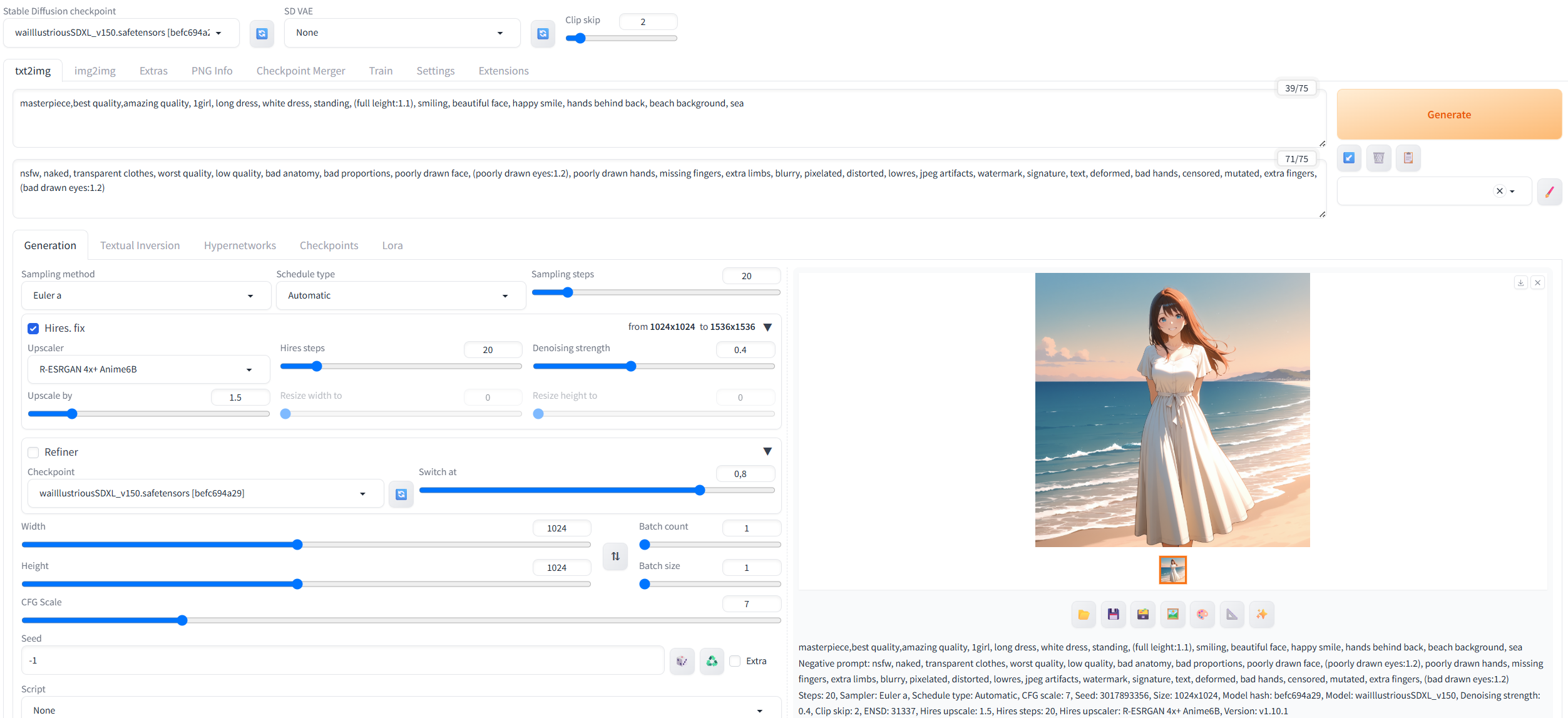 Я примерно понял как генерировать на дефолтной модельке waifu