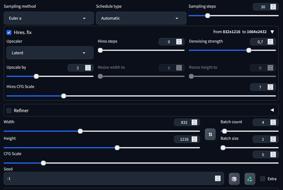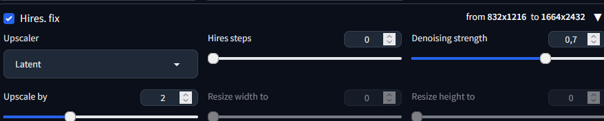 >>1404361 Не превышать определенное разрешение, ~3-3.5 мегапиксела. Для твоих стартовых параметров это приблизительно х1.35 апскейл - я обычно по широкой стороне ориентируюсь, до 1600-1664 подымаю. Для латента - денойз в районе 0.6-0.62, не выше, иначе начнет картинку сильно перерисовывать хотя может тебе это и надо. Но и не ниже, иначе пойдут блюр и артефакты.