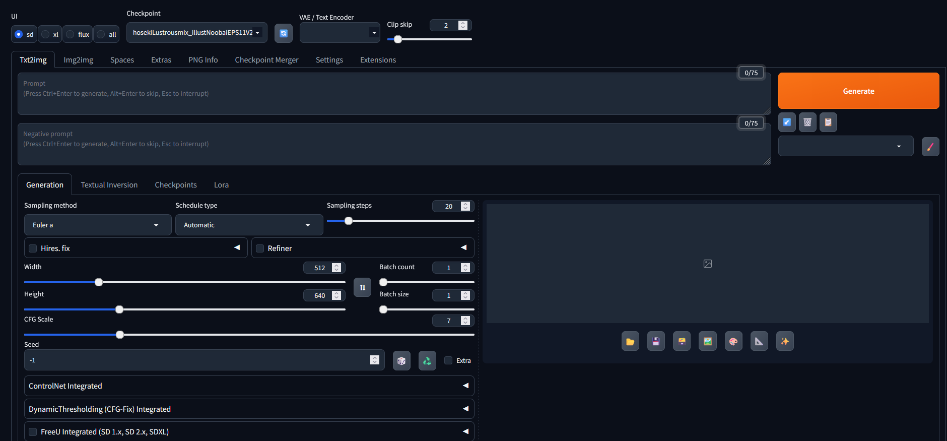 Сап. Я обнаружил себя владельцем 4070 и понял что могу наконец позариться на генерацию всяких анимешных непристойностей. Прочитал гайды из шапки и с помощью вот этой модели https://civitai.com/models/827184?modelVersionId=2167369 сделал пару десятков картинок, которые в наше время на дваче лучше не показывать. Но по ходу накопилось несколько вопросов к знающим: 1) нужно ли мне качать какие-нибудь дополнительные штуки кроме самой модели? Например в гайде предлагается скачать еще некий VAE. Что это и с чем его едят неясно, у меня и без него все красиво 2) размер промта реально всего 75? Кажется на все хотелки не хватит 3) посоветуйте годные модели которые съест моя видюха и рекомендуемые параметры к ним чтобы было достаточно анимешно, но при этом детализировано и без цензурных ограничений всяких