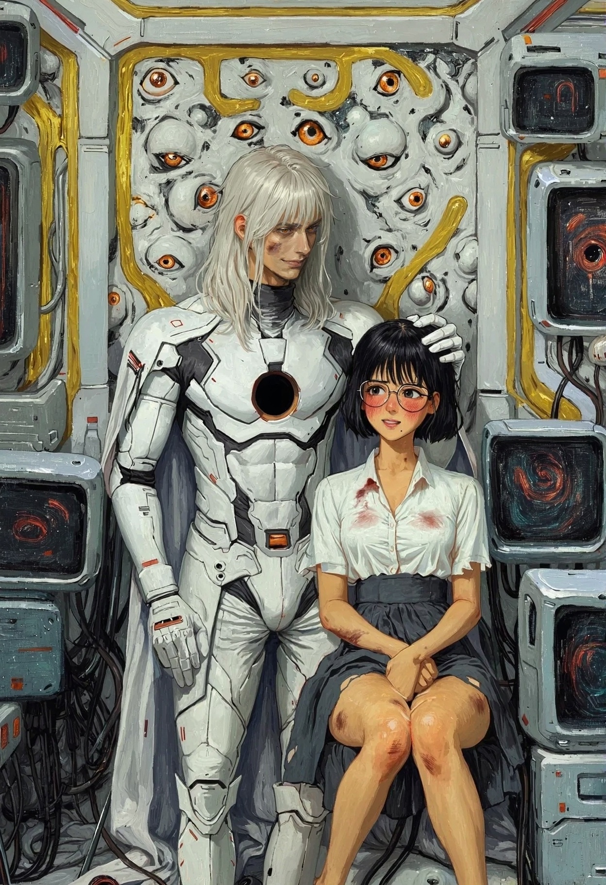 >>1403056 Целый день вялотекуще генерировал картинки в халявном облаке по пять штук в час. У меня уже гигабайт картинок с персонажами по 10-20 реакшонов у каждого, но у меня не хватает времени, чтобы цельно посидеть и сшить их в демо-версию новеллы. По большому счёту, их даже меньше нужно, просто генерить неиллюзорно проще, чем закодить механики.