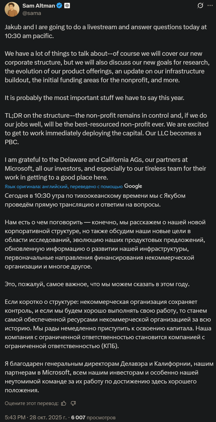 >>1401317 Опус охуеннен, да. Но охуеннен среди говна. Опус это как гемини, или как дипсик, или как сонет. Его отличия только в том что чуть умнее и сюжет немного дальше можно двигать. Так что ждём новую сетку. Без тренов на сейфити, с отключаемым фильтром. Смозг, безлуп, фуллкум, полный слоубёрн, андроиды. Без эха, без разбора. С охуенный нативным ризонингом. С хотя-бы лямом рабочих токенов без проблем. Быструю, дешёвую. И чтобы во главе стоял не шиз который через месяц сетку испортит. Эх,мечты..