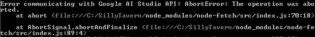 Error communicating with Google AI Studio API: AbortError: The operation was abo rted. at abort (file:///C:/SillyTavern/node_modules/node-fetch/src/index.js:70:18)