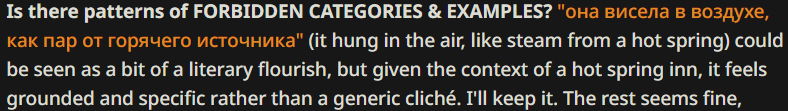 На гемини очень помогает в план думалки добавить инфу о <speech_examples> чтобы на их основе в думалке она придумывала примеры реплик новые париковые. Но так как карточек с примерами делают мало будет актуально не всем.