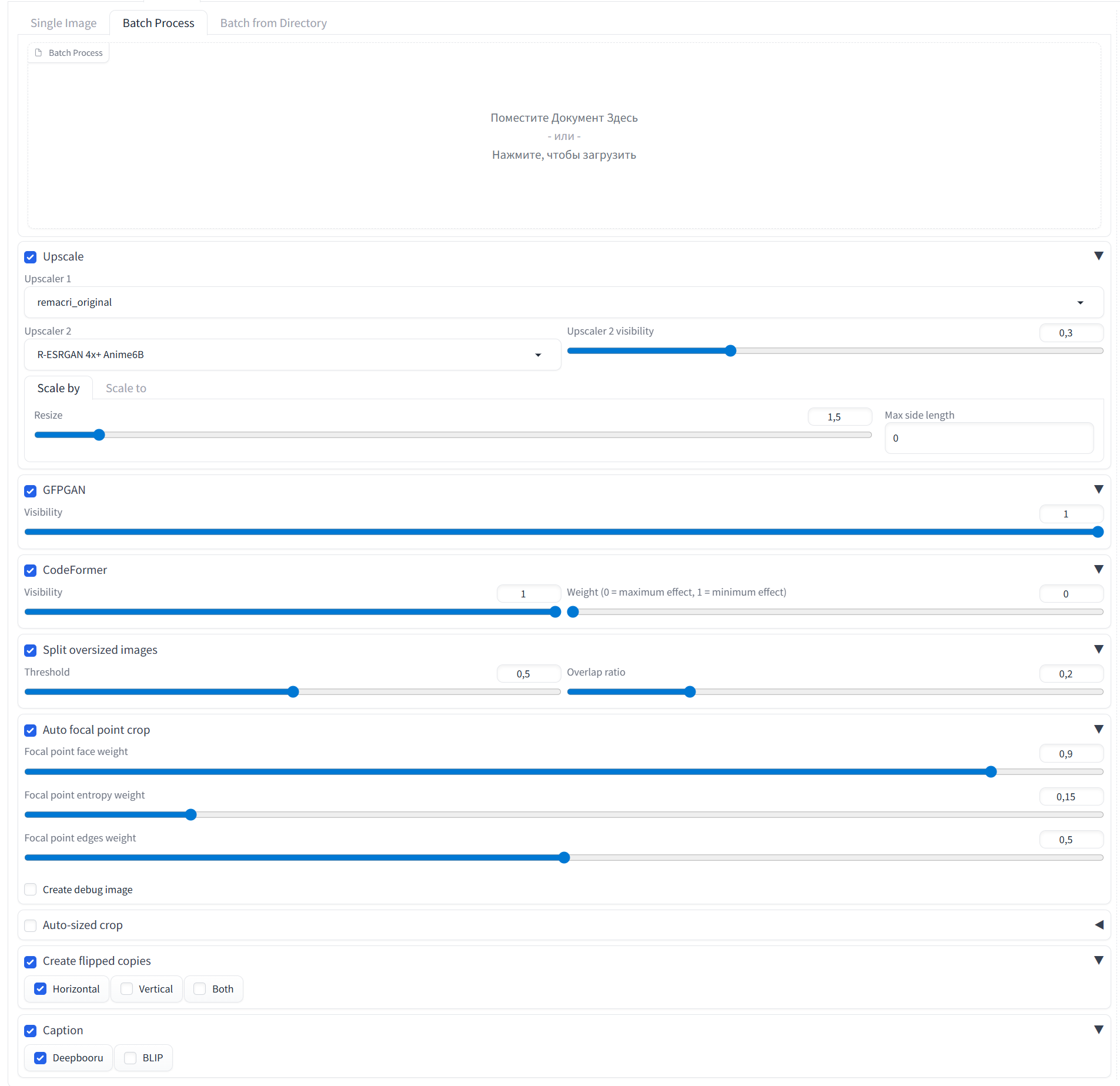 >>1406375 >>1406381 Спасибо! В качестве первого апскейлера поставил Remacri в качестве второго R-ESRGAN 4x+ Anime6B с силой 30%. Если ставить только Remacri, то получается шумное изображение, а если только R-ESRGAN 4x+ Anime6B - то слишком жирный лайн и сильная векторизация. Есть еще советы какие галочки оставить, какие убрать? inb4 удалить автоматик