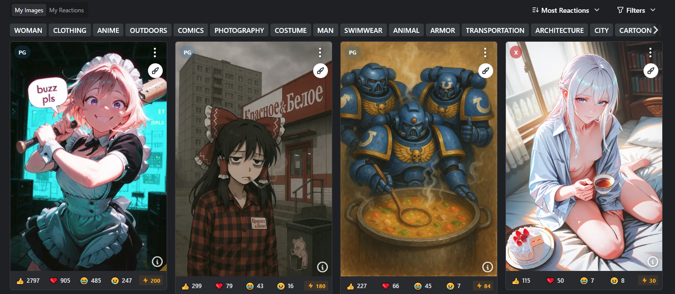 >>1417427 Активность на цивите просто упала. Раньше любые мои генерации лайкали фоново почти все, сейчас почти тотальный игнор при прежних темах. При этом некоторые картинки попадают в какой-то цикл репоста на каких-то дискорд-каналах или где-то ещё, после чего они получают довольно много по меркам галереи лайков. Или просто люди не посещают мою галерею с тех пор, как я почти прекратил делать новые лоры.