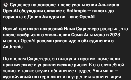 >Сделали лоботомита >Чет денег нихуя нет, одни инвестиции >Зафорсили ризонинг КАКУЧИЛАВЕКА!! >Все теперь платят за 500 токенов ответа плюс 1к токенов воды, которая в 50% случаев на ответ не влияет думалки >Чет денег все равно мало >Надрочили ризонинг, сделав его длинным эффективным и понятным >Теперь надо платить за 3к токенов ризонинга и 500к токенов ответа и ждать 2 минуты >Надрочили сейфти в ризонинге >Отныне ризонинг на 50% состоит из обсуждения безопасности запроса, а сам ответ может быть эплджусом, деньги никто не возвращает, естественно >Все еще мало деняк! >Сделали ризонинг хуизонинг на супер лёгких сетках до 120б, естественно мое. Цену снижают совсем чуть-чуть, чтобы никто не догадался Вы здесь >Зафорсили через цифры, что новый лобтомит задрочен на бенчмарки и нихуя кроме них не может самый самый и вообще АГИ, а те, кто не доволен лохи и не шарят >Нужно ещё больше нагреть гоев! >Взяли прототип супер пупер ризонинга хуизонинга за 200 баксов, который итеративно повторяется и зафорсили, что это пиздец как влияет на результат а не на 2% погрешности >Теперь абсолютно все сетки с итеративным ризонингом >Ответ пользователя может генерироваться сколько угодно долго и все равно выдать аплджек. Естественно, деньги берут за каждый токен >Больше не пишем, какая сетка отвечает на запрос, чтобы точно никто не догадался!