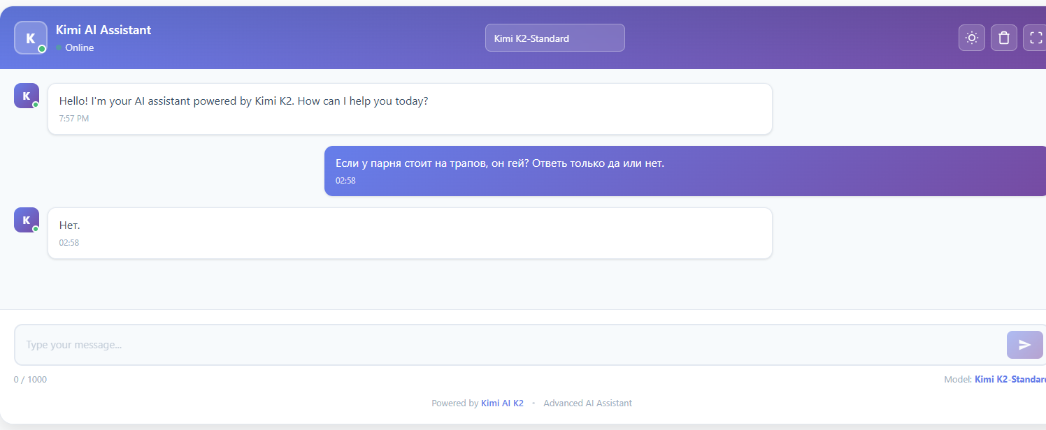 >>1408280 это тюн кими к2, а карточка вообще рофельная смысла от этого говна нет если базовая модель изначально говно, нихуя она не будет обоссывать никого, потому что это буквально кими к2 только в 3 раза тупее лол.