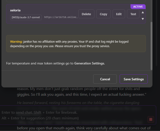 - нихуя не смог понять где выбрать этот сурс в самом приложении, нет ебаного выпадающего списка проксей которые есть в самой таверне блять, я больше часа ебался и тут спрашивал, хуй знает видимо я настолько тупой или в чем дело, пришлось нейросеть заставлять под себя перепилить.