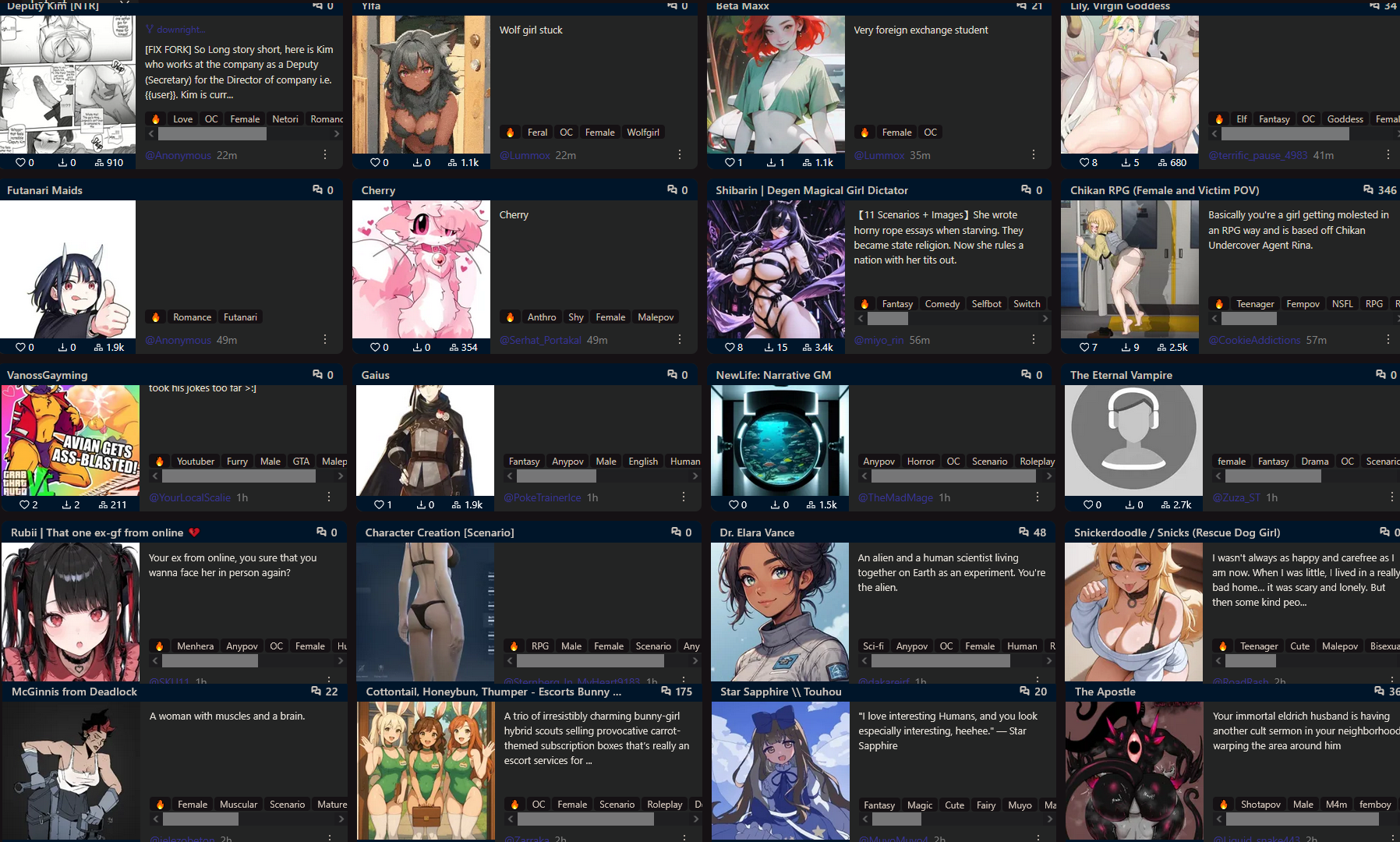 >>1406232 Тут и самих картоделов можно по пальцам рук пересчитать, так что не удивительно. Про гигантесс тоже один кентаврик делал, а потом перестал и ФСЁ. Слоп-мамочек и сучек ещё более менее делают, а вот остальное уже менее часто.