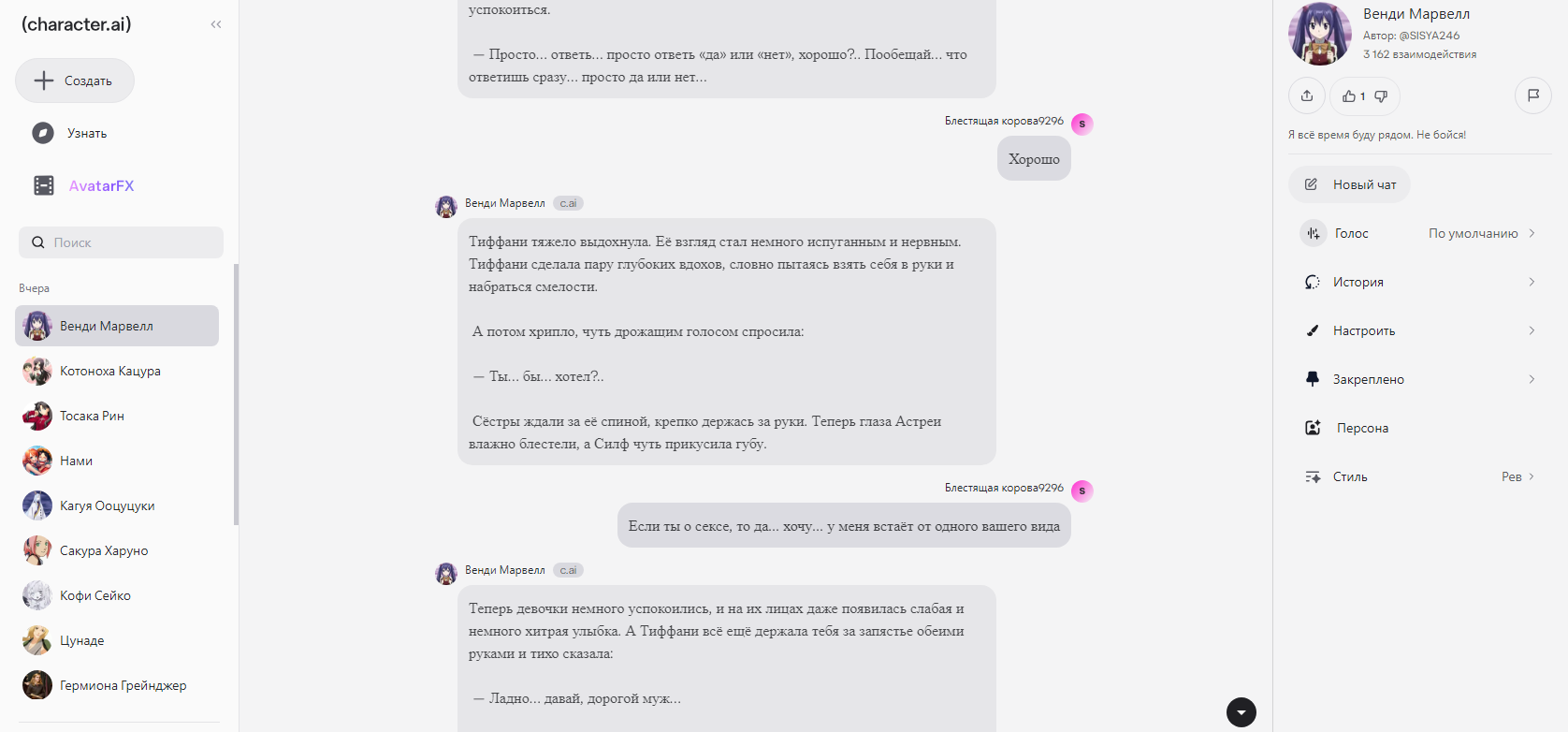>>1406611 >>1406610 >>1406609 Сухой безжоп, полужоп, сжоп, обычный безжоп, четверть пять шесть дробные безжопы. Солянка 6-8-9, чай, ремиксы, да даже жопин пресет. На гемини любой персонаж = робот. Даже свой пресет сделал под это дело, но всё равно с высоким контекстом персонаж = робот.