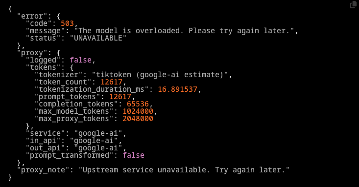 >>1407796 я себя все больше дауном чувствую уже и так и сяк вписал GOOGLE_AI_MAX_CONTEXT=112000; MAX_CONTEXT_TOKENS_GOOGLE_AI=112000; а ему похуй, и в итоге ключики в оверквоту улетают