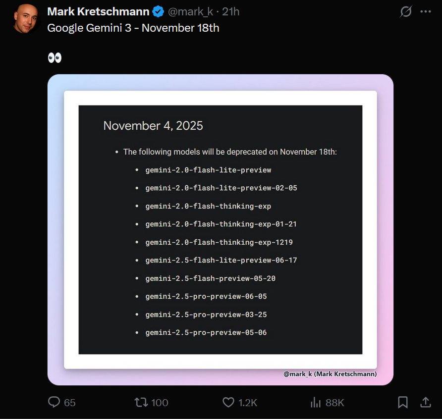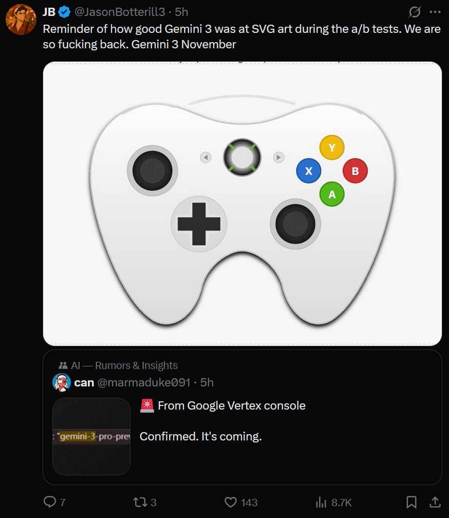 Пиздец... Вы представляете нахуй? 1.2Т параметров. Это просто О-Х-У-Е-Т-Ь! И это будут не просто каловые 1Т параметров как у кими(или какая там модель была с 1Т параметров недавно, которая каловой оказалась?) а это будут реально качественные параметры, как у гемини 2.5 про. Только в этот раз гуглы ещё на своих прошлых ошибках научатся, улучшат свои подходы и сделают ЛУЧШЕ и БОЛЬШЕ модель чем гемини 2.5 про. Даже я, человек, который забил на хобби в последнее время, вернулся чтобы узреть это потужное возвращение короля ИИ гемини 3. Недаром эту модель назвали кингфол. Ведь когда она выйдет — гпт станет просто нахуй никому ненужна. Как и клод, как и грок и очевидно как и любой китайский калл. Мы на пороге новой эры, товарищи. Скоро нам больше не нужно будет работать, т.к. гемни 3 сможет автоматизировать любую работу, сначала только ту, которую делают за компом, потом через два года сделают роботов с гемини 3 на борту и они уже автоматизируют всё остальное. Вы готовы к такому будущему, которое нас всех ждёт? Лично я более чем готов и уже не могу дождаться восемнадцатого НОЯБРЯ две тысячи двадцать пятого года когда выйдет гемини 3. Скорее бы уже.