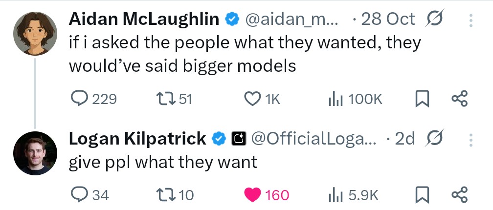>>1408666 >чтобы было чем перекрыть релиз конкурентов. чем они перекроют? очередным инкрементальным обновлением? люди продолжат хавать гавно, когда уже скоро будет гемини 3.0 с 100% контекстом под 10 лямов и нативной мультимодальностью, пока опендауны прикрываются роутером хахаха