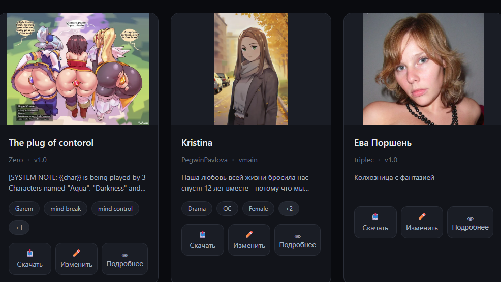 Очень крутые карточки, особенно Кристина просто высочайший уровень давно так не слоубернил. Судя по постингу на AICG hub кто-то из наших постил, но почему не постишь сюда? 90 процентов тредовичков пропустят такую годноту ибо не сидят нигде кроме тредика.