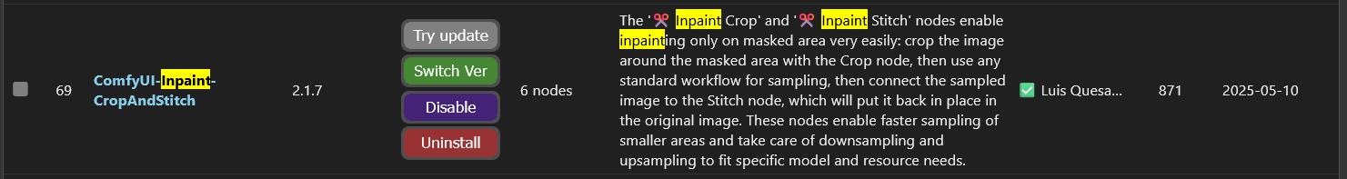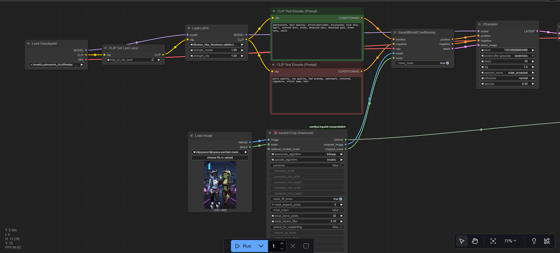 >>1411884 Я юзал вот эти ноды, вф если надо вот (жсон перетащить в комфиуи просто). Грузишь картинку, выделяешь область которую надо поправить, например ебальник пишешь промпт, генеришь. https://files.catbox.moe/8gk130.json