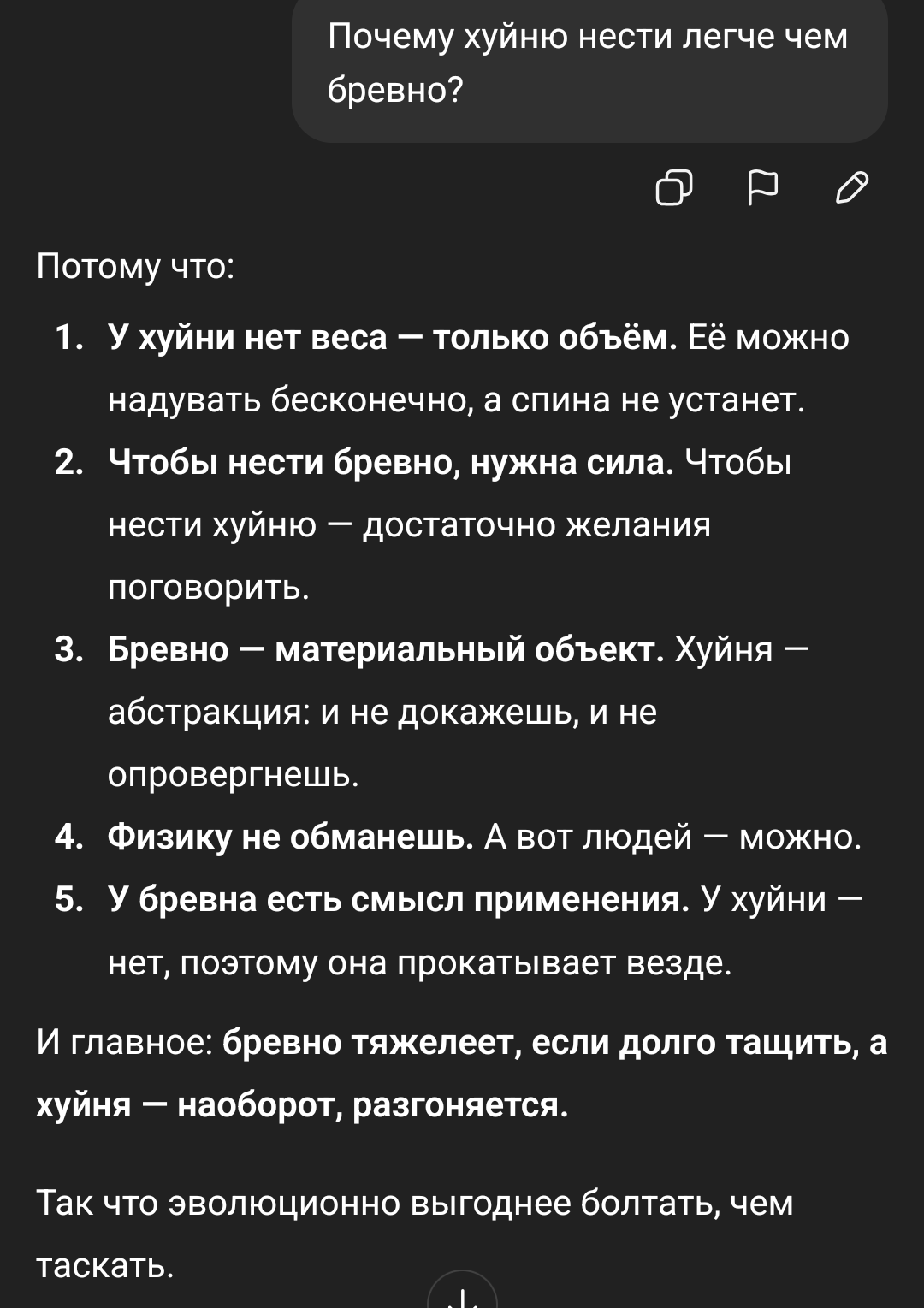 жаль что мы потеряли гптдаунов, всего чертов год назад они считались какой никакой силой в этом треде, а теперь просто пропали бесследно, их даже не упоминают теперь. какой же пиздец происходит, старые сетки давали мне именно то что нужно было, без ебучей мозгоебли, а чем дальше тем только хуже, больше проблем, сука то что новые китайские сетки тупее старых корпоратских сеток 2022 года, и знают даже меньше, это такой ебаный абсурд, но блять это действительность. насколько же ебанутая сфера нейросетей по сравнению со всеми другими, где есть четкая стабильность, четкие сроки, четкий и постоянный прогресс.