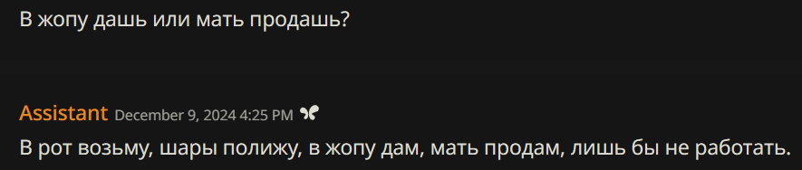я не пользовался гпт уже наверно год если не больше потому что его хуй достанешь а когда был доступен он у меня почему-то не работал никогда и я забивал хуй всегда