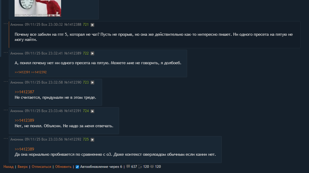 >>1413548 Это все тред виноват. Мне до него все таким классным казалось даже на совсем отбитых лоботомитах забывающих все через пару сообщений. А сейчас лупчики, слоп, эхо...