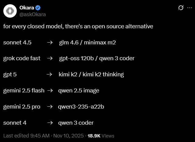 >>1413357 >Так он как я понял говорит не про локалку а что запускает К2 локально. Не локально запускаешь - не локалка, а тупо открытые веса. К2 на нормальной скорости запустить пупок развяжется. я тот же анон если что конечно я не у себя запускаю) просто под локалкой имею в виду любую открытую модель которую в теории можно запустить у себя, но понятно что так никто не делает просто пиздишь ключи или платишь вендору моделей который их хостит БЕЗ инжектов, БЕЗ логов, БЕЗ цензуры, БЕЗ очередей, с большим выбором любых "локалок" от дипсика до и того что вышло буквально вчера у них даже есть опция когда вставляешь ссылку с HF и он скачивает для тебя модель и запускает как это НЕ может быть метой? как можно до сих пор сидеть на клодах и называть себя клодобоярами/жемини/джпт? это буквально прошлый век (позапрошлый год) дипсик я еще пойму, но только через норм провайдера а не через официального потому что в официальном наверняка говняк и логи