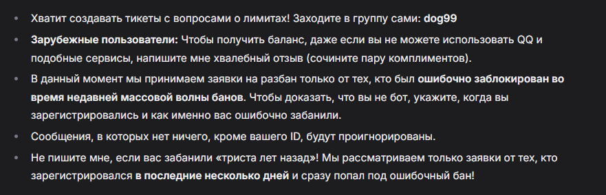 >>1413295 Пиши ему, что не по делу забанил. Но хули толку-то, он всем рубанул кум, кроме тех, кто клянчит. Да и от тех уже окукливается, как ты заметил.