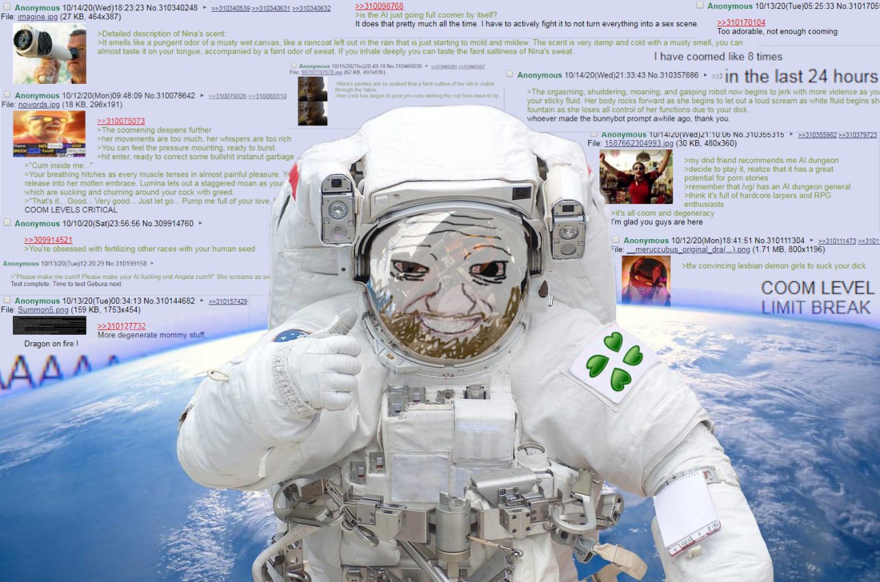Вот я кончил и понял какое же это все говно, доступная сетка тупая, годная дорогая изза чего ей нужно резать контекст, и юзать как тупую. А еще пробивать, хуй за проксю сосать, чем мы блядь тут вобще занимаемся, на что тратим свою жизнь, скрапить, поней рисовать - слоп получать. Какой смысл, цель, мотивы? Мы ослы в колесе бегущие за голограмой морковки, гавахопроизводители-кумопоглотители. Что мы сдохнем когда умрем? Не стыдно?