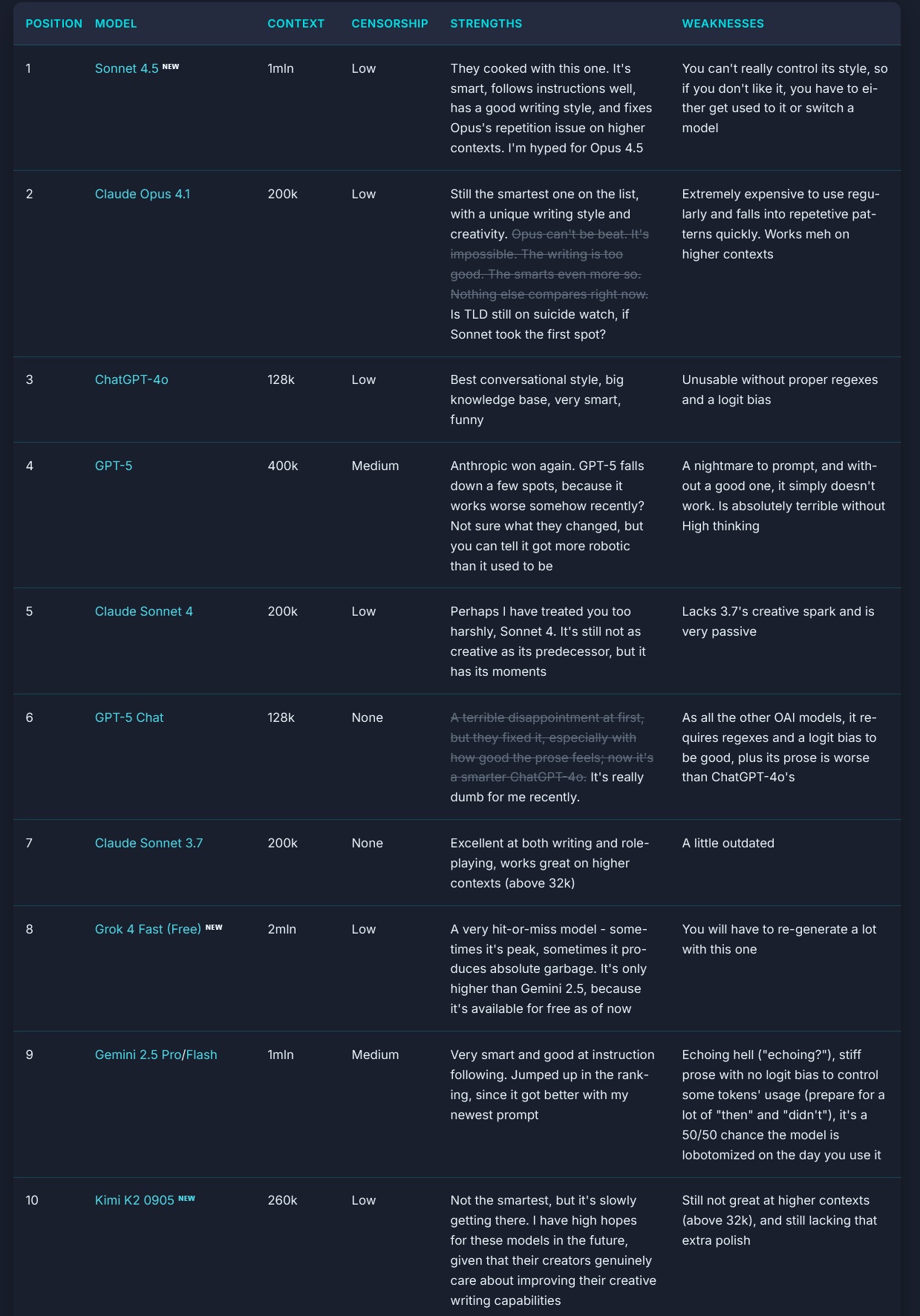 Юзабелен ли клод? Безсспорно. Лучше ли он остальных? Объективно - нет. Субъективно - по началу да, но чем дольше юзаешь, тем больше минусов замечаешь, с которыми можно только мириться. И так в прицнипе со всеми моделями - у каждой свои ебейшие минусы с которыми нужно только терпеть. Почему сру на клода? А все лишь потому что именно его боготворят все кому не лень - от тредовичков и калфоидов до яойщиц. Обоснованно? Вполне - в куме выдает вау при минимальных вложениях, в других ситуациях может дать посмеяться если юзаешь пару дней/недель. Реально ли это так? Нихуя нет. По причинам выше. А про минусы гемени, гпт, дипсика и так все в курсе.