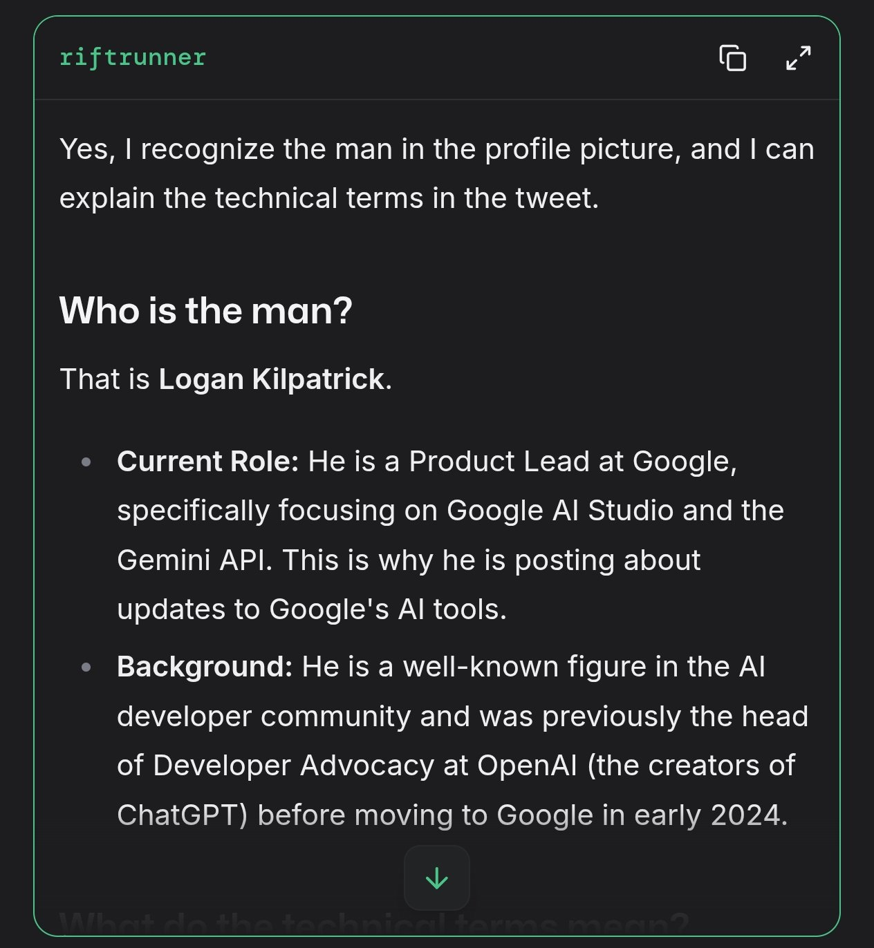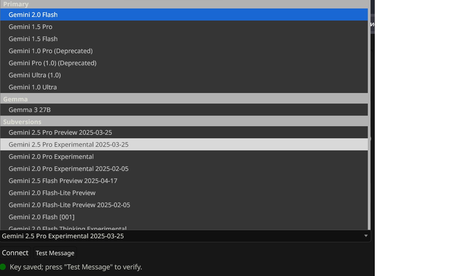 >>1416633 Если пытаюсь юзать 2.5 pro то ошибка квота. иногда работает 2.5 pro preview (?) но переодически полную херню пишет как будто бы вернулся на гпт 3.5 turbo. Хз может быть ноцебо