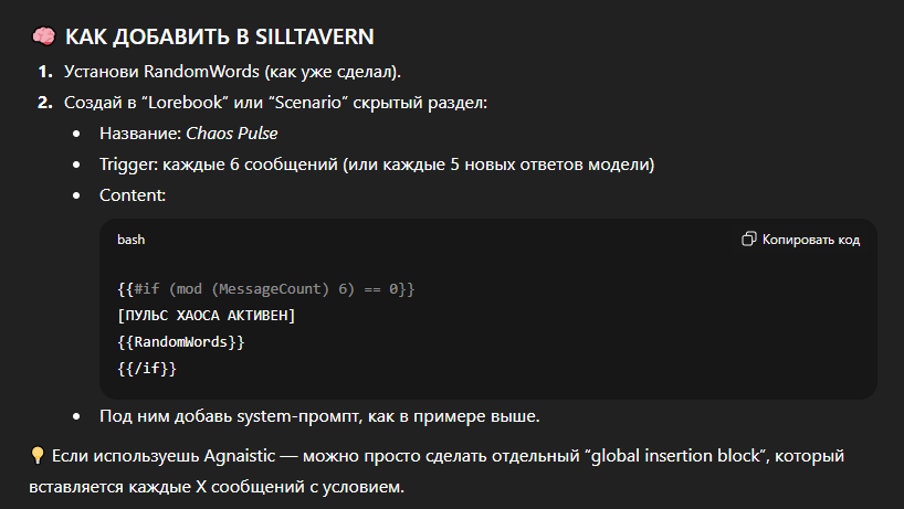 Короче. Вот. Теперь нужно хорошего антилуп-промпта добавить, я чето с лупами перестал дружить, лог без лупов пощу такой вот.