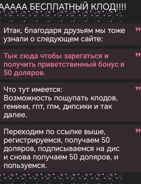>>1416031 Клод постоянно спунфидят саранче+олдам на токен ключики сыпят Дипсик - заходишь в любую конфу яойгноя и лутаншь сурсы Гемини - если совсем еблан идёшь и регаешь гмаил, и всё, больше ничего не нужно