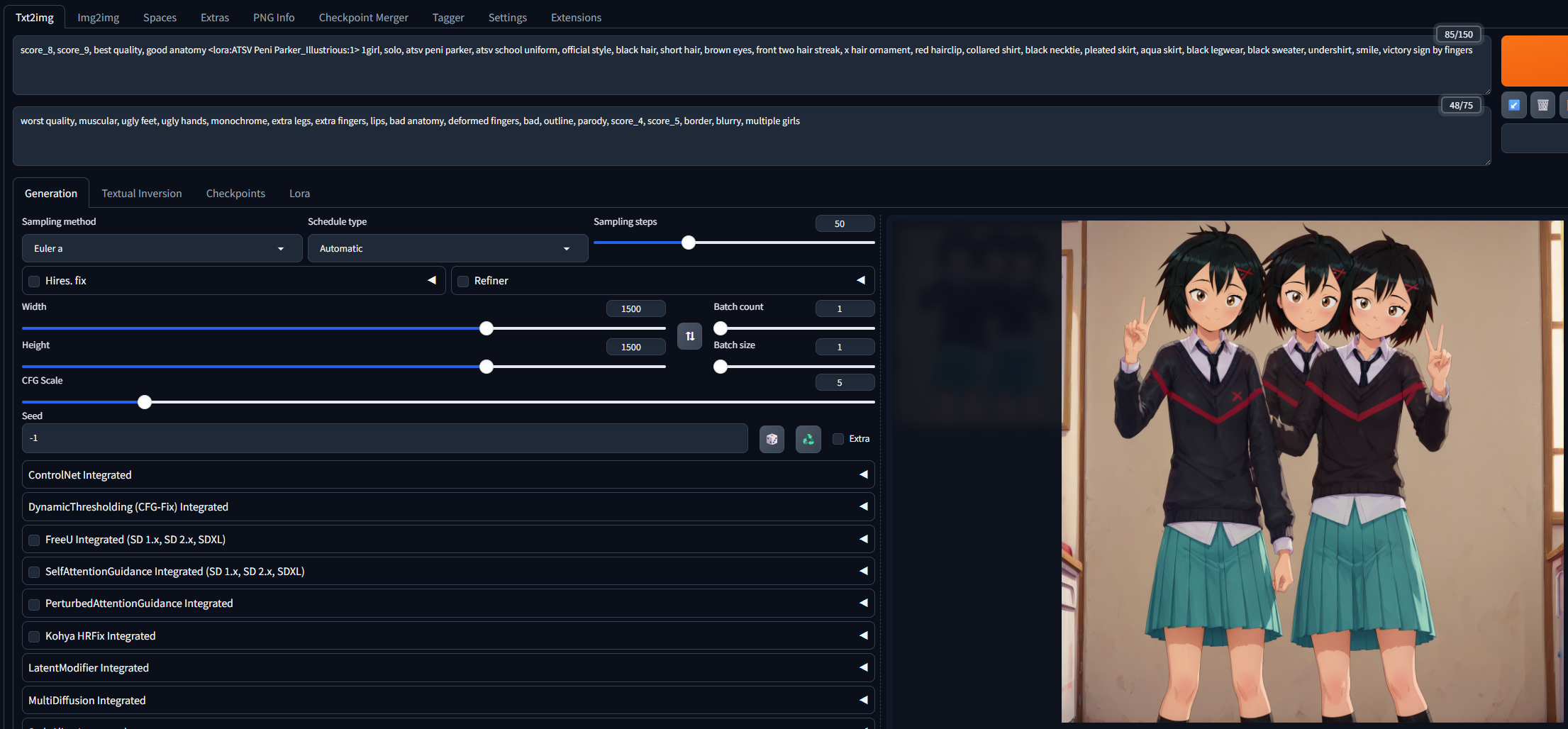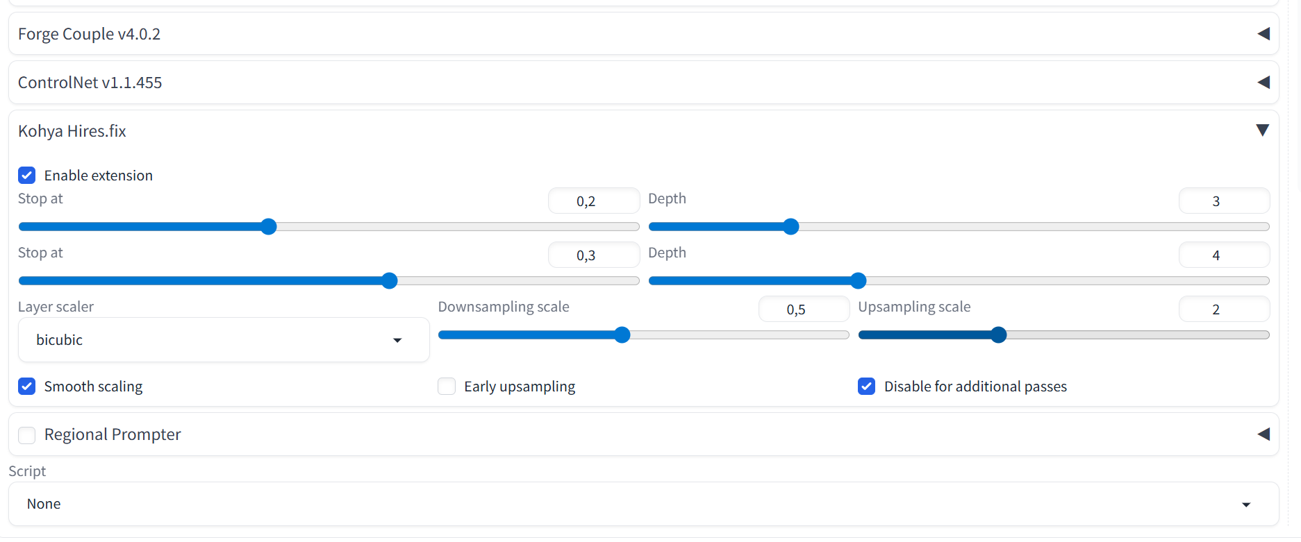 Новару лучшая Жопка. >>1417805 Кохья хрфикс сила, одно из самых нужных расширений, пусть и таг автокомплит не переплюнет. Я недавно скачал на пробу Форж Нео, там в последнем большом апдейте автор "оптимизировал" сборку, выпилив "лишние" встроенные расширения: PAG, SAG, Kohya HiresFix, зато оставил Мультидиффьюжен я так и не понял, на кой хер он нужен в Форжах, если он там толком не работает. В общем, так и хотелось спросить у этого Хаоминя02 - ты там дайджобу, чел? Благо что ставится всё обратно тупо копипейстом из базовой версии.