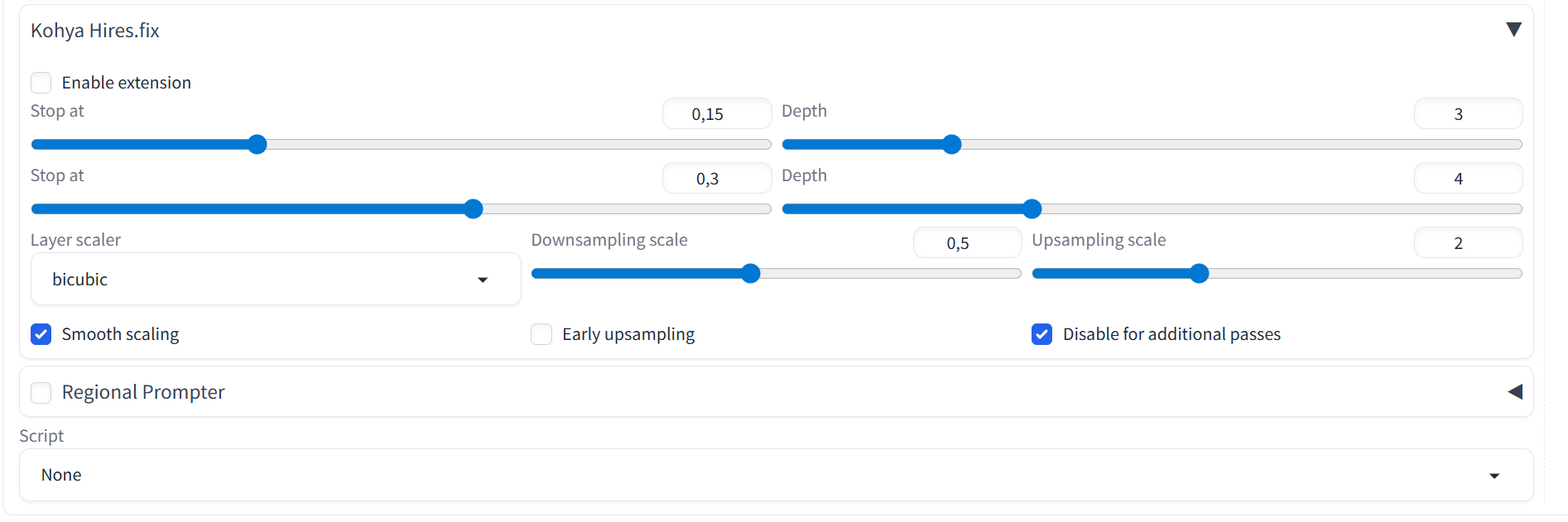 >>1428163 Сам по себе хайрезфикс - просто второй проход i2i с конкретным апскейлером и кратностью разрешения. Чтобы повторить то же самое в i2i - при выставлении разрешения выбери не указание конкретных значений а upscale by, для выбора апскейлера добавь в настройках в Quicksettings list "upscaler_for_img2img" и выбирай из поля сверху нужную модель апскейлера, если хочешь латент - ниже где выставляются основные настройки выбери его вместо простого resize. Далее денойз и прочие параметры, все то же самое. >>1428305 > TensorHub Хорошее название, лол. > будет заброшена Они не сделали общую валюту и аккаунты? Так-то smartass, покупаешь все через обычные платежи на "тру сфв платформе", а шаринг с хабом - просто бонус.