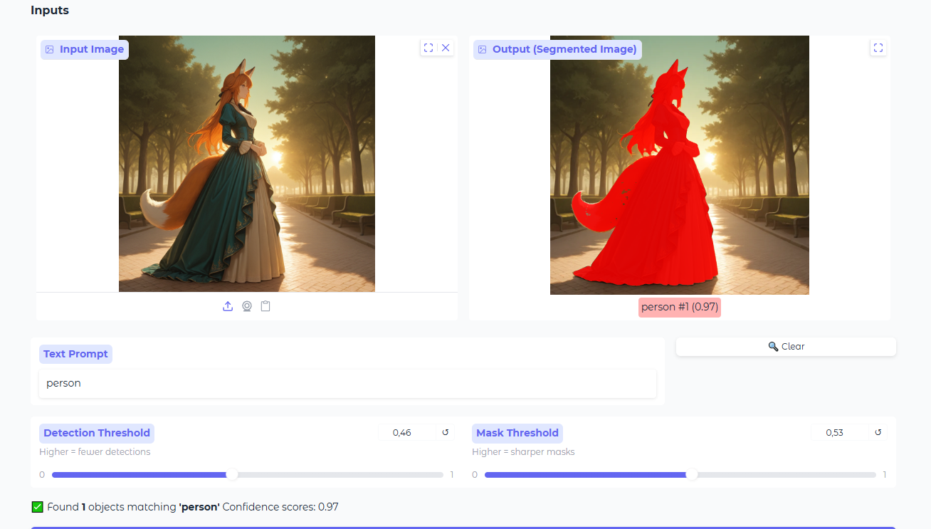 >>1426558 >SAM3 Я пощупал его в онлайне https://huggingface.co/spaces/akhaliq/sam3 Не отличается по юзабилити от вырезателей фона, которые уже есть у меня. Либо забирает слишком много, либо слишком мало, и иногда не детектит части дизайна персонажа. Если промптить background, будет как пикрил два. Для очень грубого детекта для фиксации наличия объекта на картинке или для отправки сегмента в сэмплер это окей, но для чистовой обработки неюзабельно.