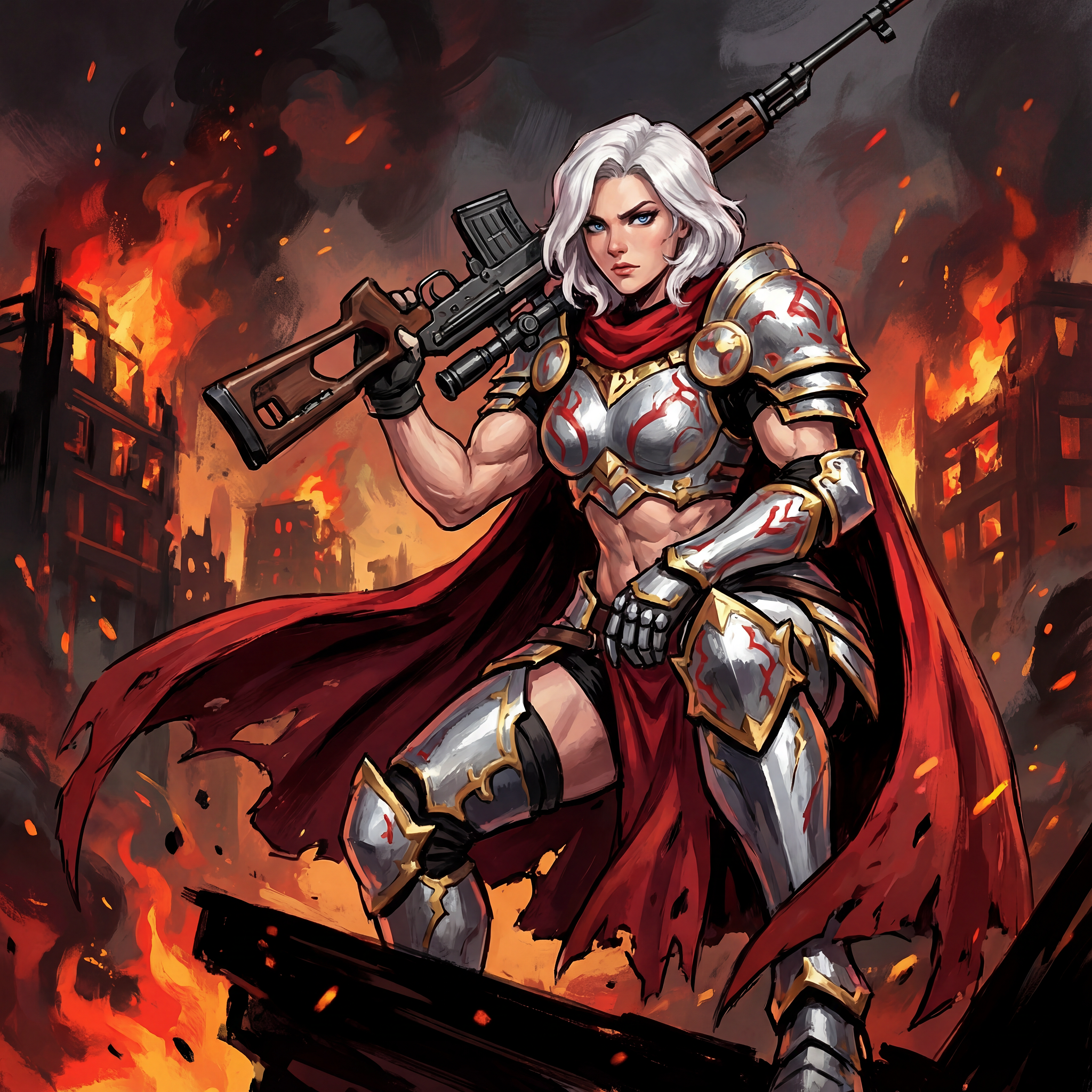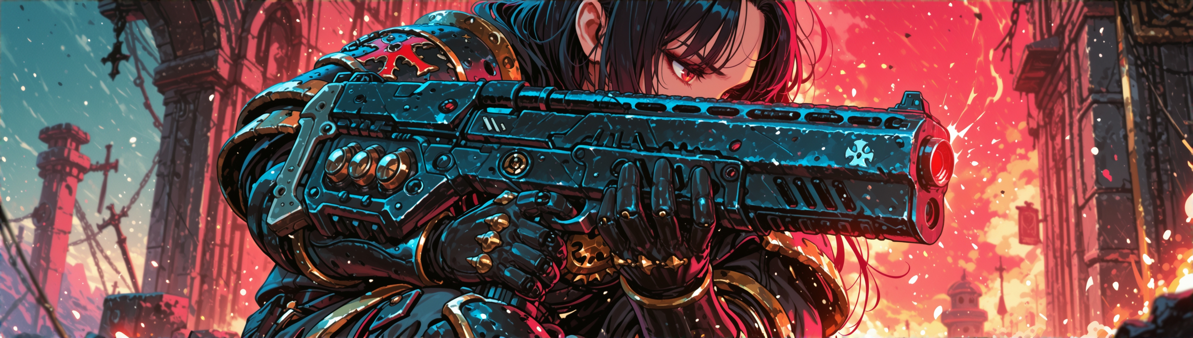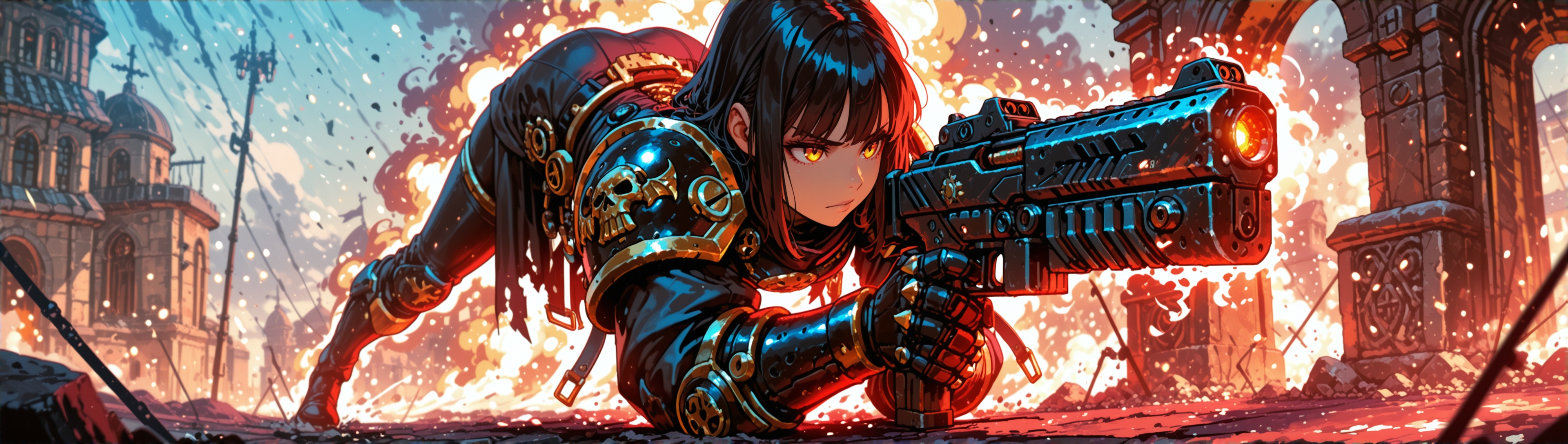 >>1426276 В общем обидно Kohya Hires.fix дает более интересную картинку при том же промпте, но все-таки ломает анатомию. На правой картинке руки слишком тонкие и длинные, кажется совсем чуть-чуть, но это бросается глаза. Пистолеты вообще всратые.