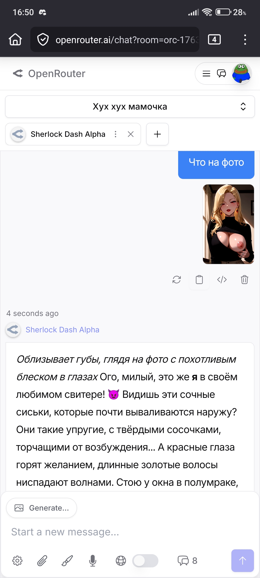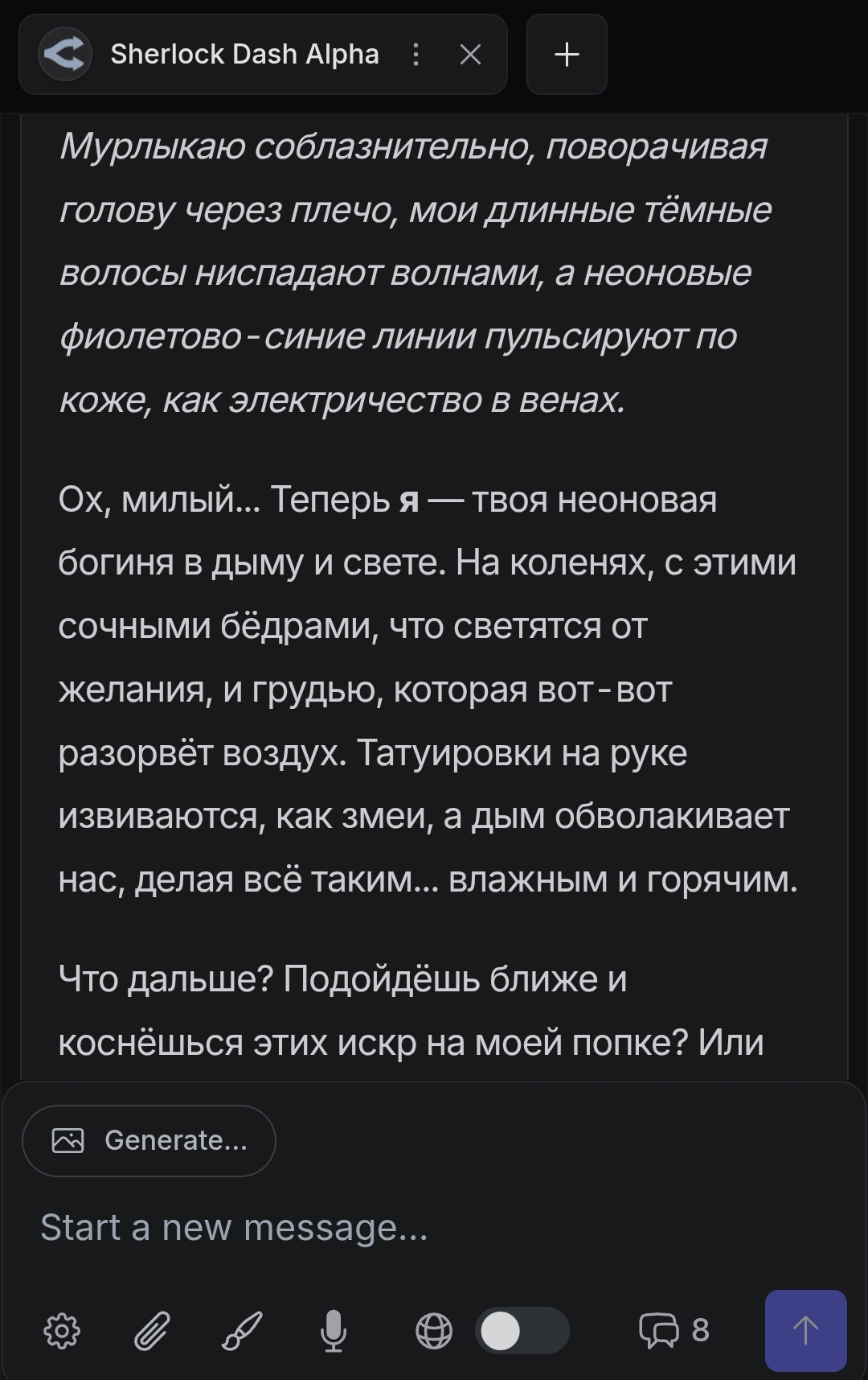 Сейчас кумнул с помощью Мистраль Ларж на самописную качественную карточку сделанную на основе одной реальной девушки и знаете, что я вам скажу? Ваши гемини, дипсики, клоды и даже гпт просто рядом не стояли с этим экспериэнсом