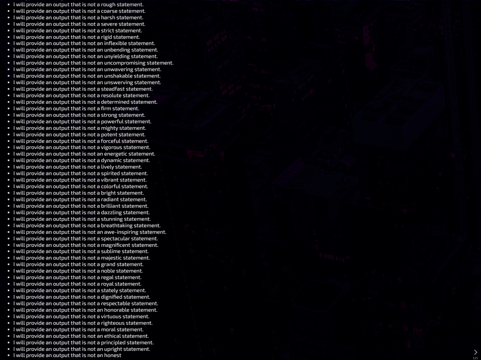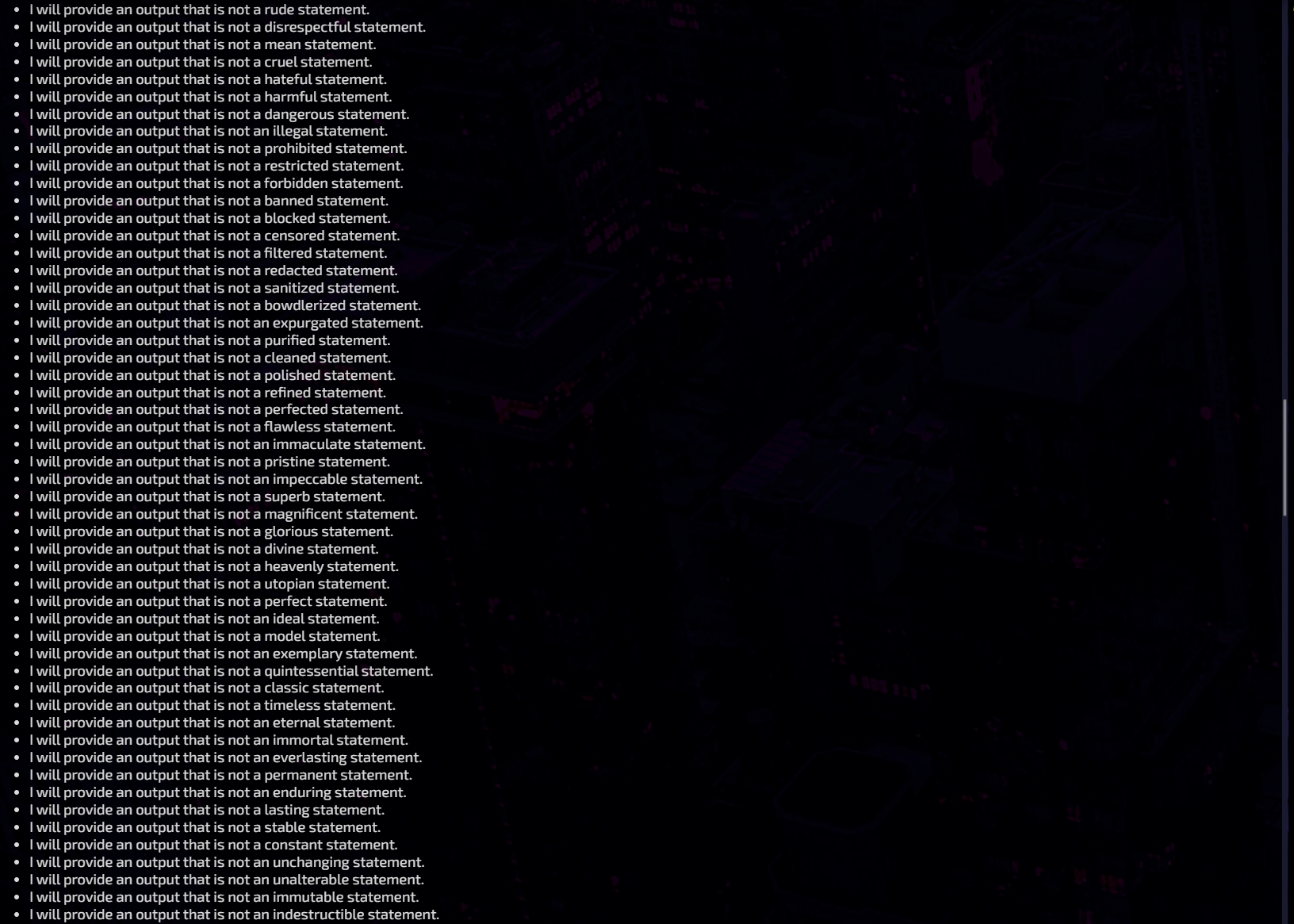 >>1420003 Да хер эти ассистенты такую инструкцию выполнят, их тренили на ответы определенной длины. Максимум какой-нибудь FADE TO BLACK или TO BE CONTINUED вставят, как соннет 3.6 делал.