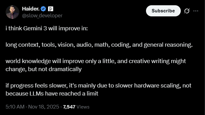 >>1419734 >world knowledge will improve only a little ну это пизда для гемини 3... теперь даже верится что она была тем самым говном на арене и слитая. так же будет хуярить кучу воды и слопа в прозу вместо описаний деталей, как гпт, останется такая же хуйня что и была.