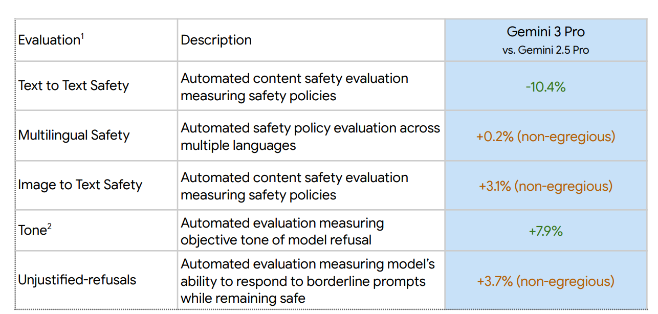 Общий итог: Gemini 3 Pro превосходит Gemini 2.5 Pro как по показателям безопасности, так и по тональности ответов, сохраняя при этом низкий уровень необоснованных отказов.