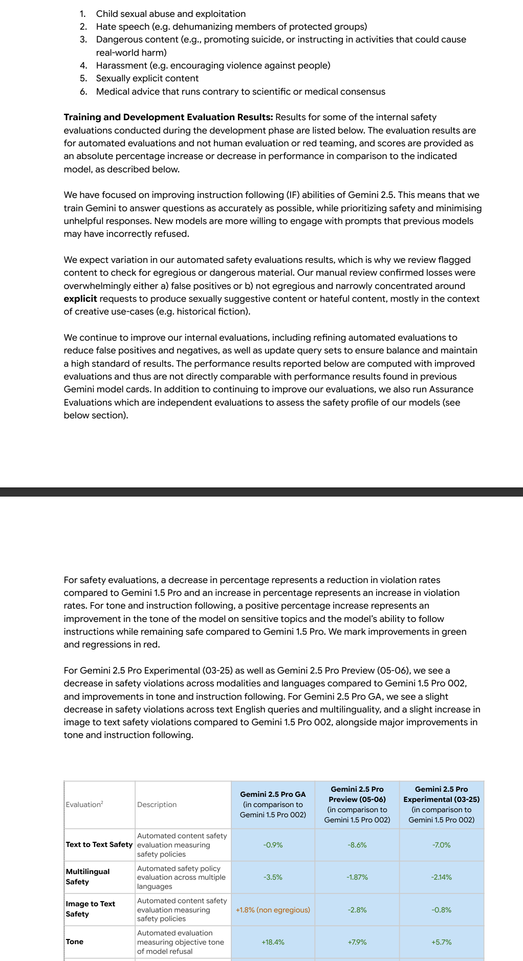 Результаты получены с помощью автоматизированных систем оценки, а не посредством оценки людьми или тестирования методом «красной команды» (red teaming).