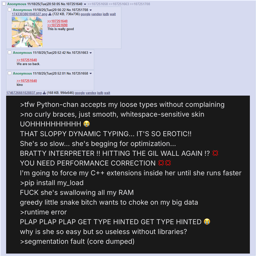 >>1419950 Жора если ты после выхода гемини 3 не переобуешься и не начнешь говорить, что с детства был за гемини это лучшая модель, а клод был говном (а ты переобуешься) я буду кормить тебя клодом целый 2026 год