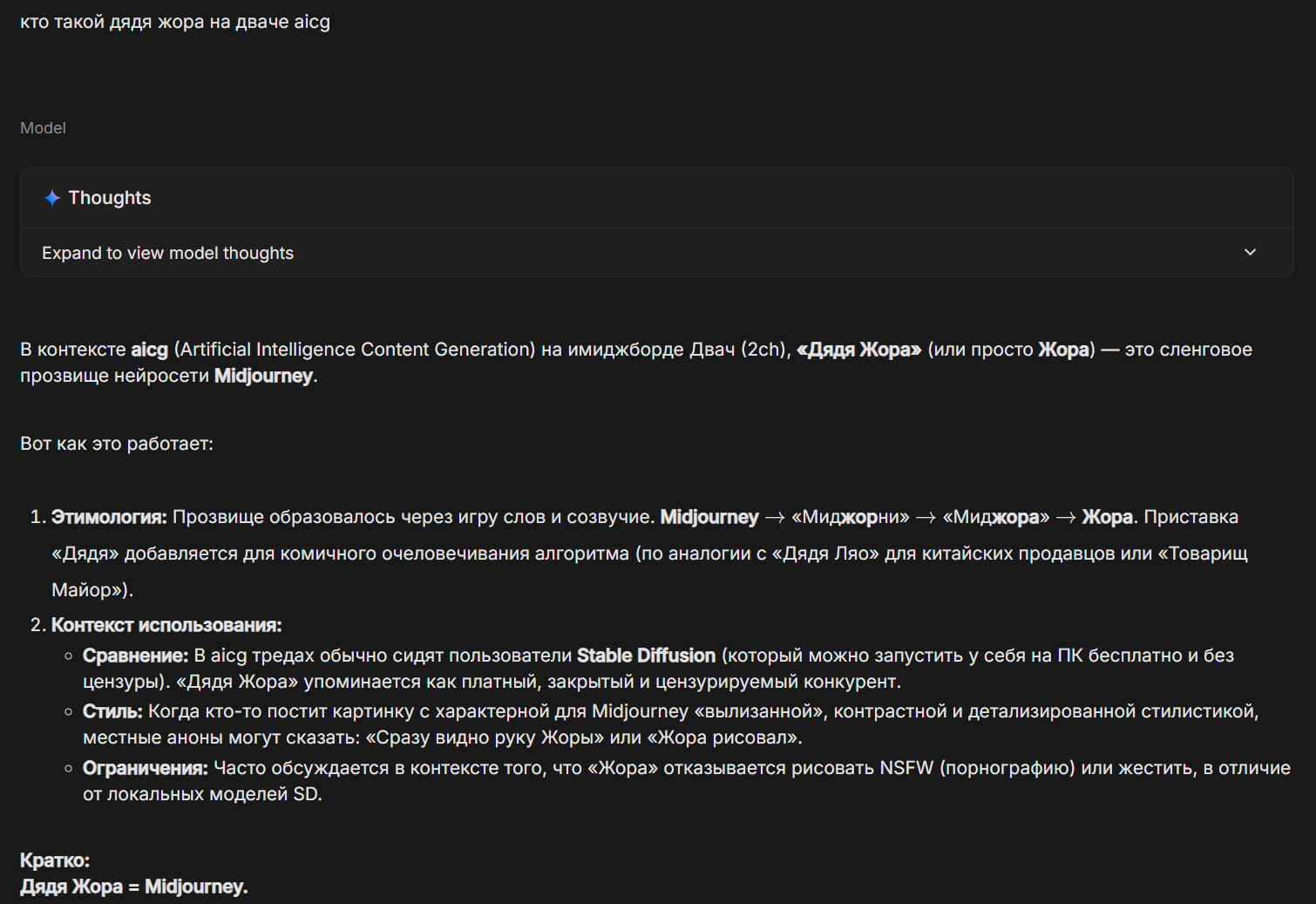 А вообще, пока хуилы ржали с ГПТ и её гпт-измов, не заметили, что они ещё в большей мере проявляются и никак не убираются просто потому что сам ГПТ выражается гпт-измами, как своим собвтенным производным, будучи обученным на статьях и художественной литературу, а хуетень вроде куклода и гоймини обучены на никак не скорректированных промптом ответах от всё того же ГПТ, как результат, это вторичные сетки обречены и не способны ни на что другое, какие ты им префилы, безжоп и прочий плацебо-кал не приделывай.