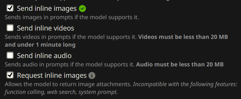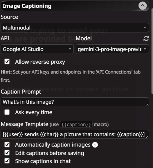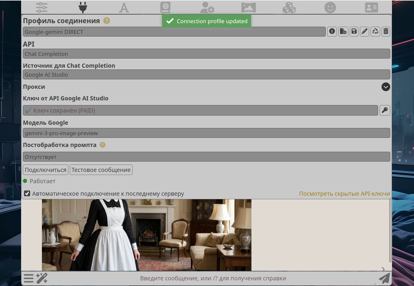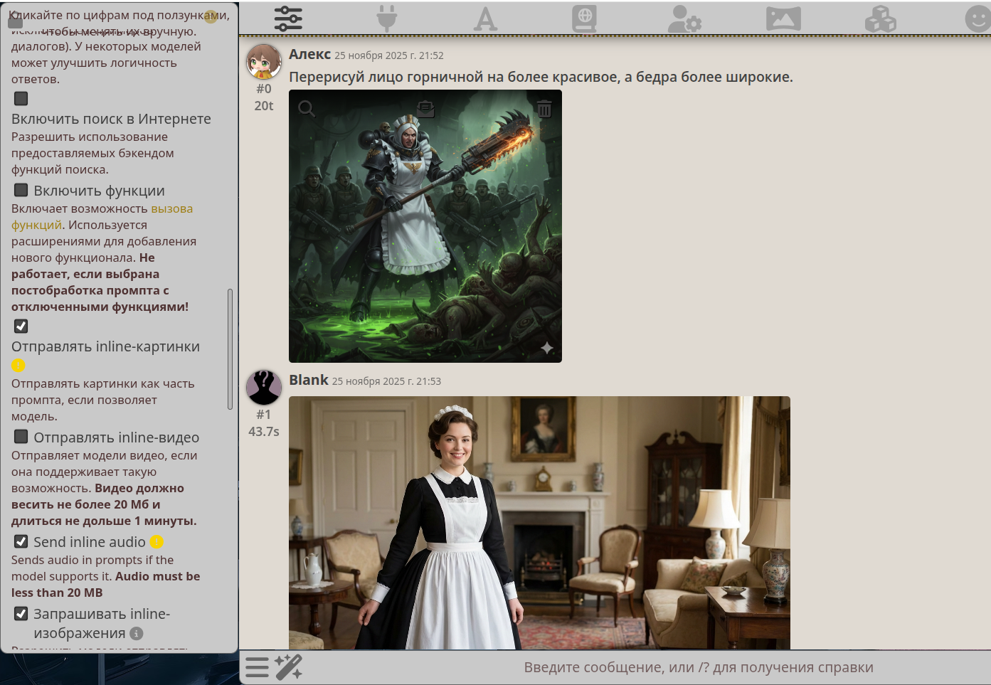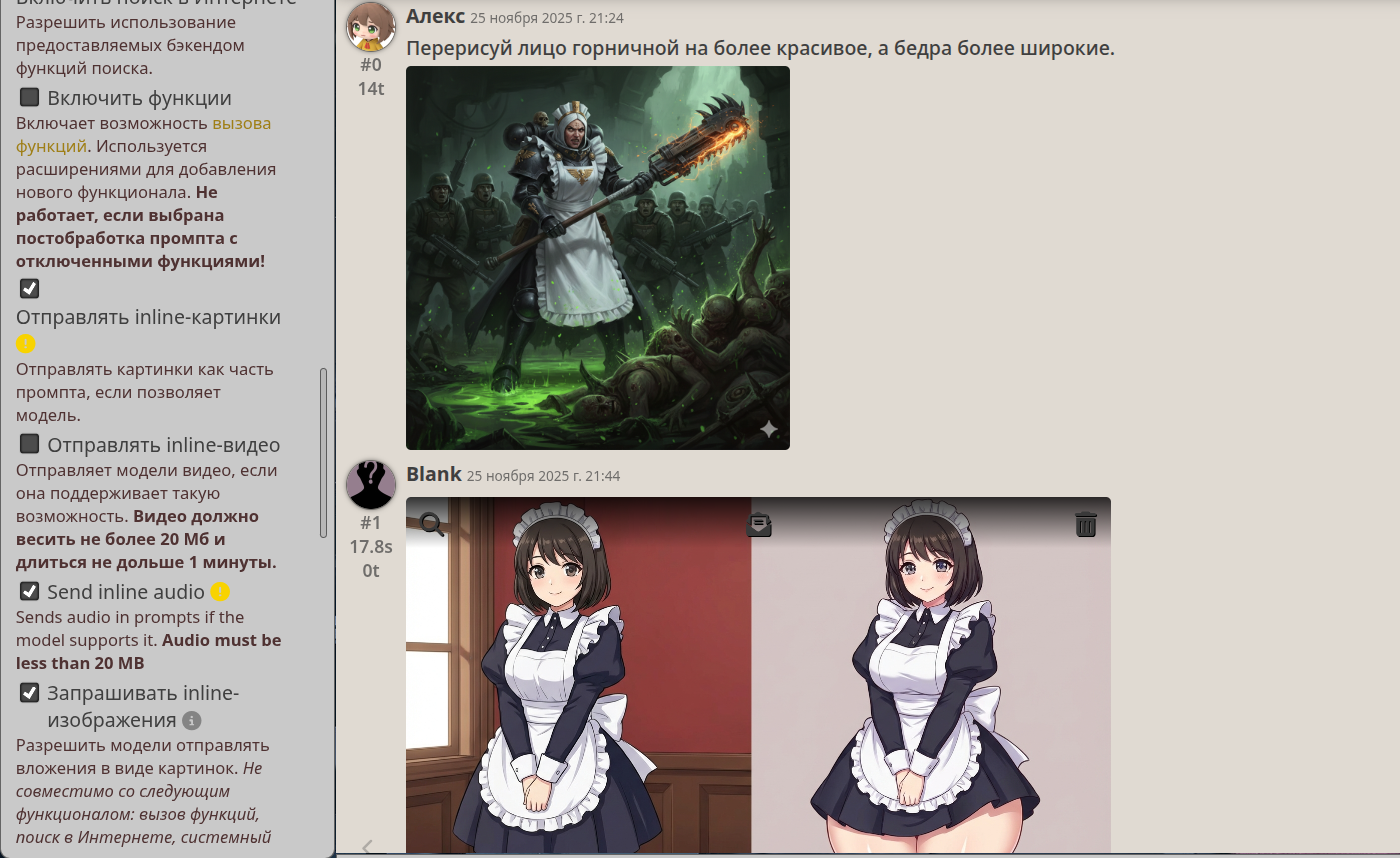 И вообще кстати, тут прикол такой у силллитаверны - оно неправильно использует гемини 3 картинки, оно не вставляет thoughts signature так что апи модельки не может подтвердить что оно само делало картинку, это реально важно и влияет