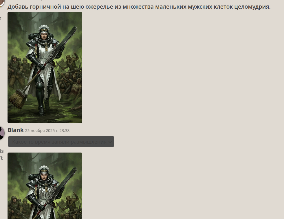 >>1430265 >Add male chastity cages (lots of them) onto the maid as a necklace через телегобота того который скинули