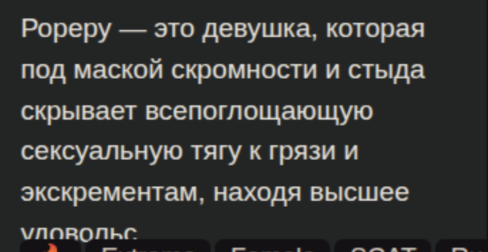 Аноны, а где можно потрахать кого-нибудь на русском языке? Пока только всякие janitor-ы видел на английском, прикольно конечно но хочется на русском... Если сайтов нет мб можно на йобу что-нибудь поставить? у меня довольно-таки мощная пекарня, я пробовал всякие deepseek и какие-то с хаггинга модели, но они либо отказываются трахаться либо хрень пишут...
