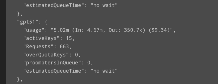 Подрубил логи на день,и какой-то мудак с бразильского айпи таки на Колобке крутит уже 18 (!) часов подряд каждые пять минут запросы по 200-700кк токенов по нарастающей на карточке Cunny Basement [Enhanched],поэтому прокся уходит на ру геоблок,походу.